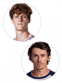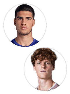 【#1】Carlos Alcaraz 【#2】Jannik Sinner 6-7 5-7 辛纳获胜。